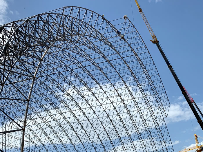 (2)网架加工前应对现场尺寸进行复测,确认无误后方可进行加工、安装;网架制作、运输、安装应遵守《空间网格结构技术规程》JGJ7-2010、《钢网架昆明螺栓球节点》JG/T 10-2009、《钢网架昆明螺栓球节点用高强度螺栓》 GB/T 16939-2016、《昆明钢结构昆明工程昆明施工规范》 GB50755-2012、《昆明钢结构昆明工程昆明施工质量验收标准》 GB50205-2020。